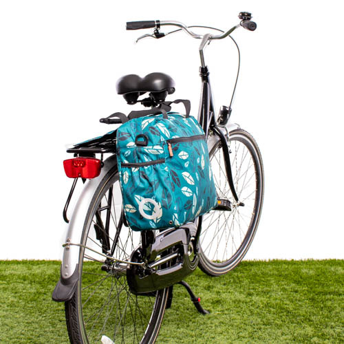 Een praktische enkele fietstas/shopper met een trendy print. Sterk van kwaliteit, opvouwbaar, met veilige reflectie en een inhoud van 19 liter.